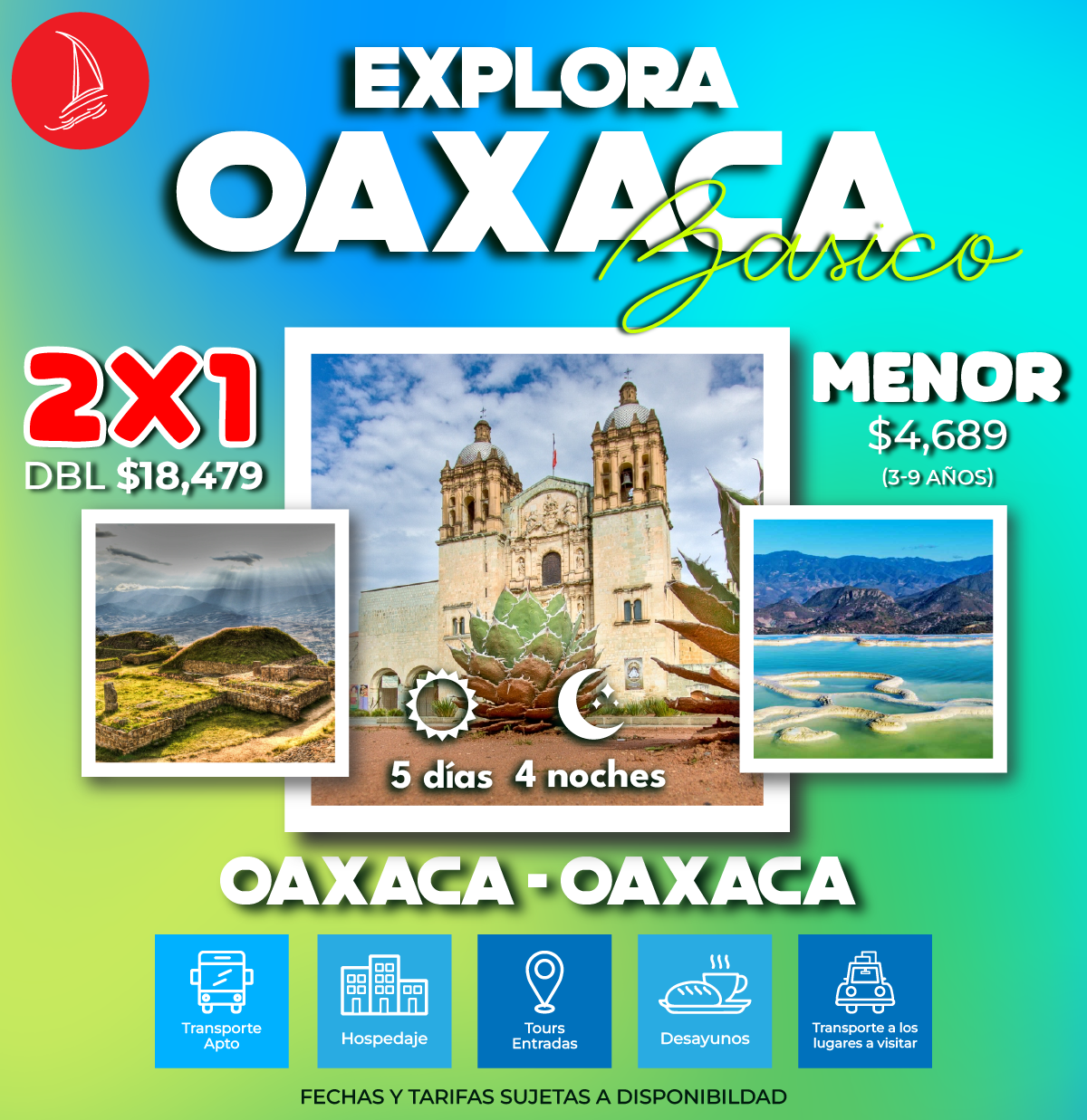 En este día conoceremos el milenario árbol de tule, con una altura de mas de 52 metros y un grosor de mas de 42 metros, que lo hace el árbol de mayor diámetro en el mundo, y como no empezar este día con una deliciosa prueba de pan de cazuela y un recorrido por el mercado de Tlacolula de matamoros donde su peculiar aroma a pan te hace caer en la tentación del mas rico de los pecados. Continuando con esta excursión procederemos a trasladarnos a hierve el agua, conjunto de cascadas petrificadas únicas en América, recorrerás sus miradores y podrás meterte en sus pozas de aguas salinas cuya función era antes un sistema de riego prehispánico, tomaremos un pequeño descanso para trasladarnos a un restaurante bufete donde comeremos (costo no incluido). El siguiente punto es Teotitlán del valle donde conocerás el proceso de elaboración de tejidos prehispánicos y sabrás los secretos de teñido de sus tapetes con base a la grana cochinilla y cascara de algunas frutas o plantas, entre otros. La siguiente parada es en la zona arqueológica de Mitla donde nos adentraremos en la enigmática “ciudad de los muertos” y un precioso tesoro arquitectónico, descubriremos el secreto de su construcción, sus tumbas y sus grecas, se parte de la historia de la piedra del amor y la columna de la vida. Mas adelante, en la siguiente parada haremos un recorrido donde se explicará el proceso de fabricación de mezcal artesanal, desde la fermentación hasta el destilado sin faltar las tradicionales “pruebitas” de esta bebida ancestral.